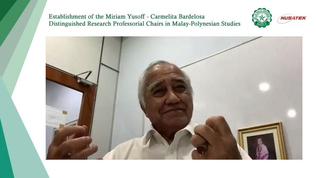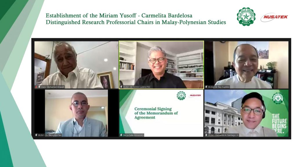De La Salle University established the Miriam Yusoff-Carmelita Bardelosa Distinguished Research Professorial Chairs in Malay-Polynesian Studies last March 10 in a virtual ceremony.