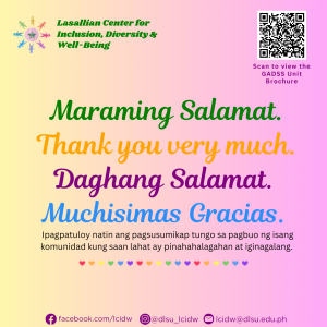 pasasalamat Date 2024-08-22 Share: Angelica Villanueva You may also like DLSU inaugurates KIST Park at Laguna Campus 11 October, 2025 DLSU prof, first Filipino to receive Yale Emerging Climate Leaders Fellowship 6 October, 2025 Lasallian Mission in Action for Pearl S. Buck Foundation 3 October, 2025